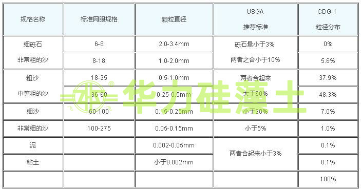 其中CDG-1產(chǎn)品的粒徑規(guī)格符合USGA(美國高爾夫球協(xié)會)推薦的果嶺建造標(biāo)準(zhǔn):